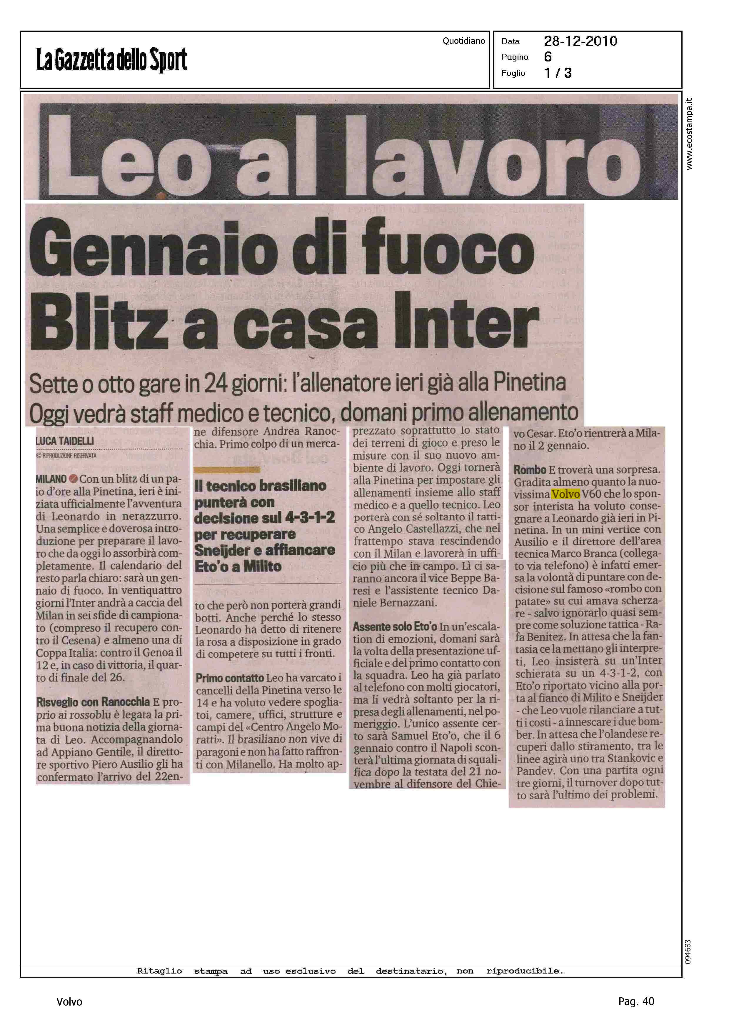 Author: TAIDELLI, LUCALine: Corporate Model: Corporate Subject: - Title: LEO AL LAVOROHighlight: INTER F.C. - VOLVO - VOLVO V60