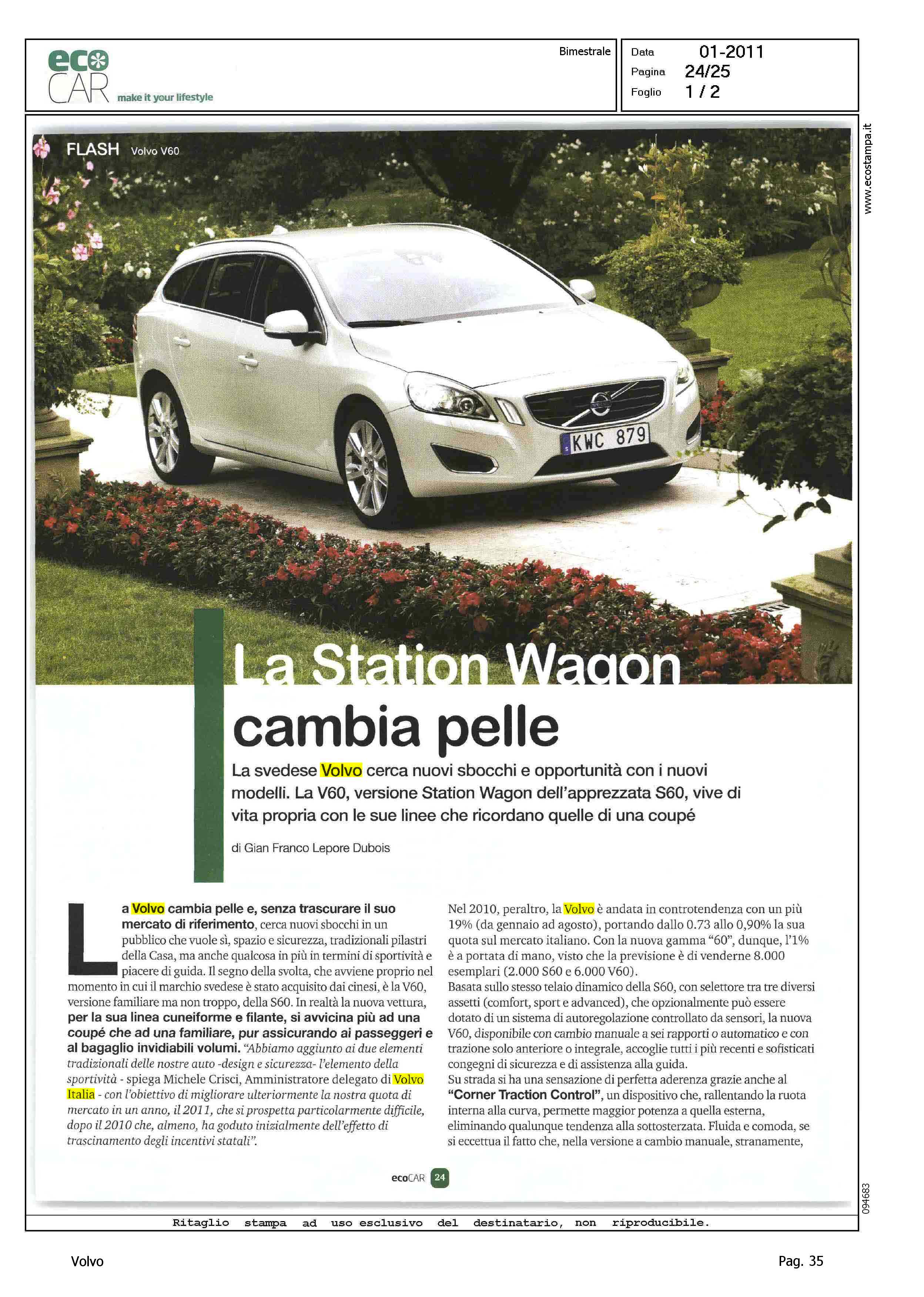 Highlight: (VERONA) - PROFILO VOLVO - SPORTIVITA' - VALORE VOLVO - GEELY - CRISCI SU S60 E V60 - SICUREZZA - MERCATO ITALIA - ACCESSORI SICUREZZA DINAMICA DI MARCIA - SICUREZZA - PEDESTRIAN DETECTION - ABITACOLO - INTERNI - BAGAGLIAIO - VOLUME - MOTORI - PREZZI - BOX, MOTORI, GAMMA DRIVE