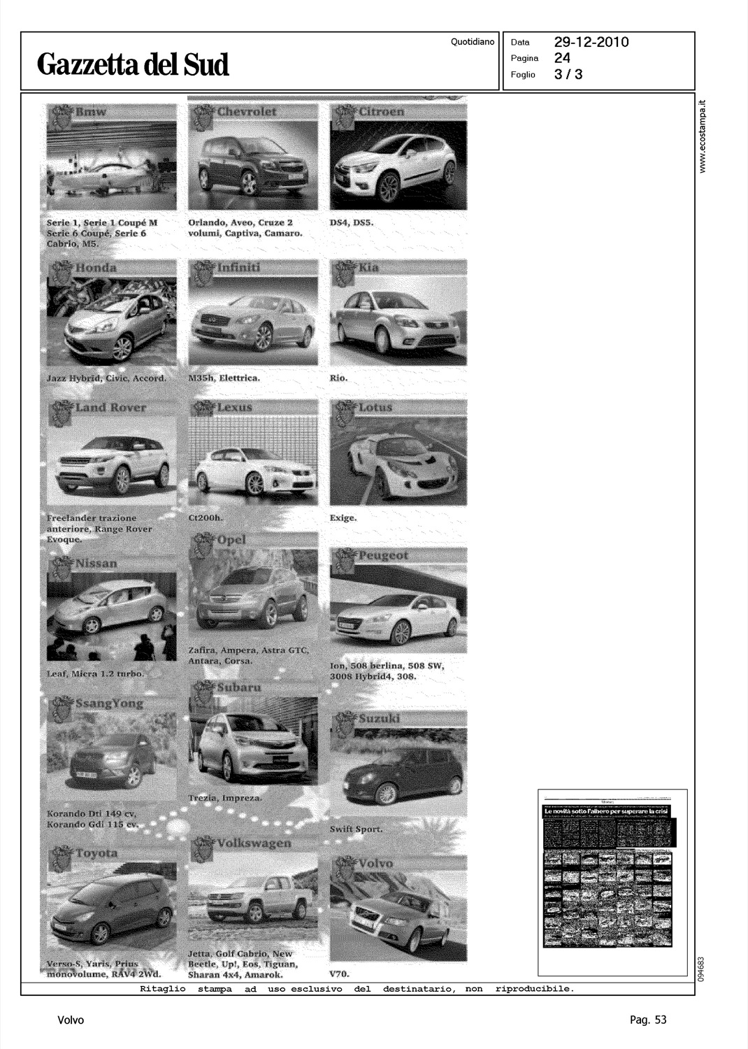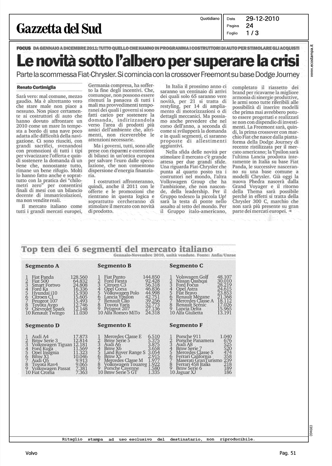 Author: CORTIMIGLIA, RENATOLine: Corporate Model: Corporate Subject: - Title: LE NOVITA' SOTTO L'ALBERO PER SUPERARE LA CRISIHighlight: CALENDARIO NOVITA' 2011 - VOLVO V70