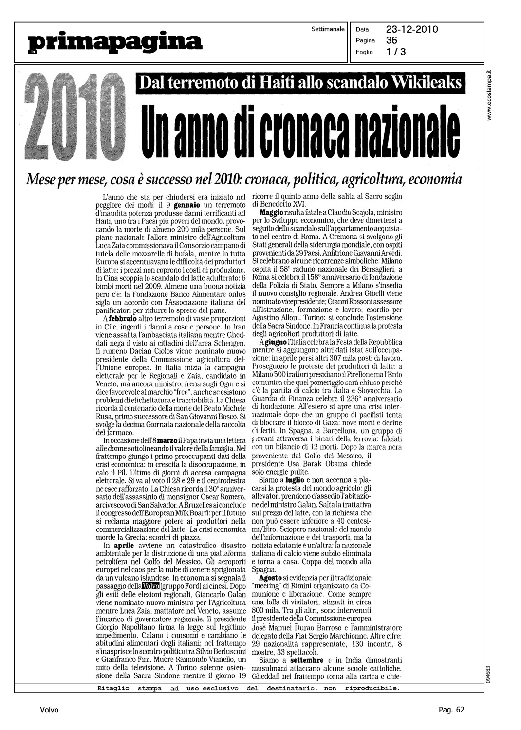 Author: CERUTTI, BEPPELine: Corporate Model: Corporate Subject: - Title: 2010 UN ANNO DI CRONACA NAZIONALEHighlight: VOLVO - GEELY - AVVENIMENTI 2010