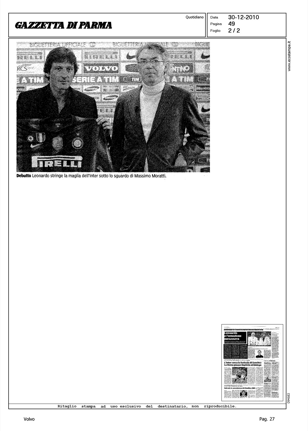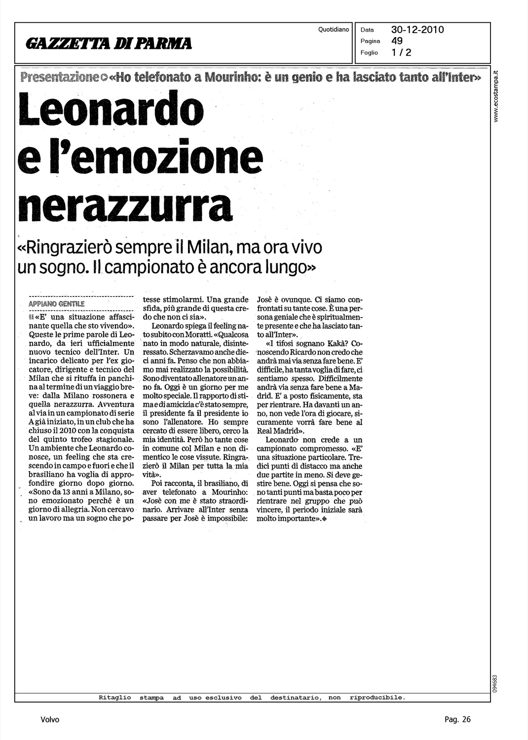 Author: Line: Corporate Model: Corporate Subject: - Title: LEONARDO E L'EMOZIONE NEROAZZURAHighlight: INSEDIAMENTO LEONARDO - INTER F.C. - VOLVO