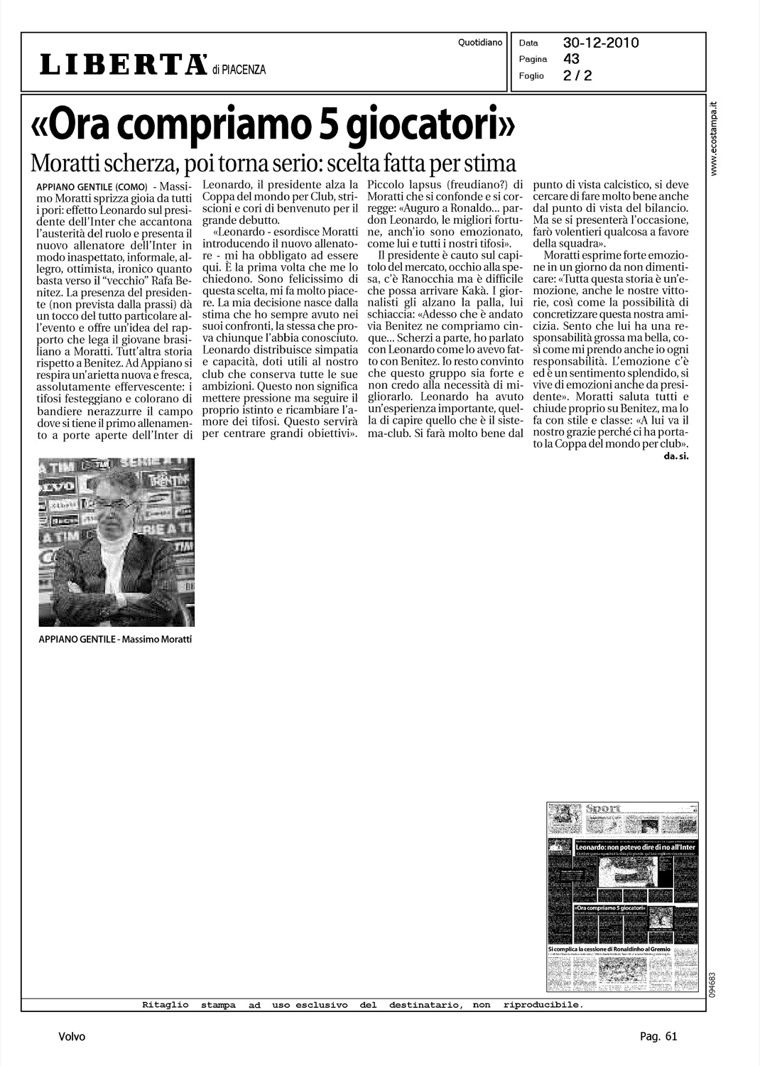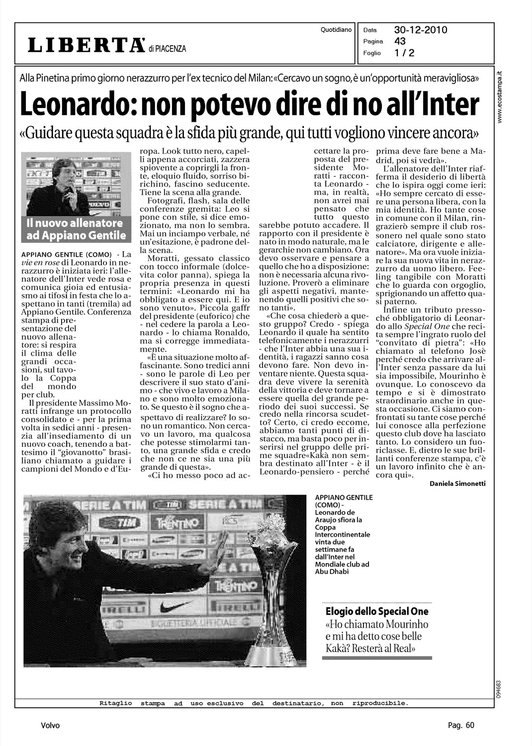 Author: SIMONETTI, DANIELALine: Corporate Model: Corporate Subject: - Title: LEONARDO: NON POTEVO DIRE DI NO ALL'INTERHighlight: (EDIZIONE PIACENZA) - INSEDIAMENTO LEONARDO - INTER F.C. - VOLVO